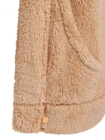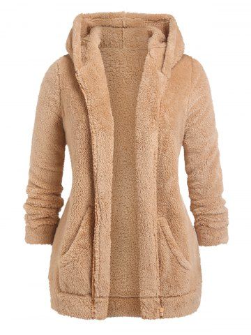 Plus Size Pockets Hooded Faux Fur Coat - Light Coffee - 4x