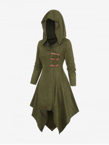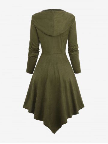 Plus Size PU Buckle Long Sleeves Hooded Handkerchief Coat - Deep Green - 1x | Us 14-16