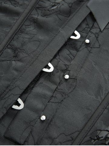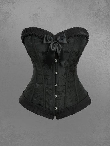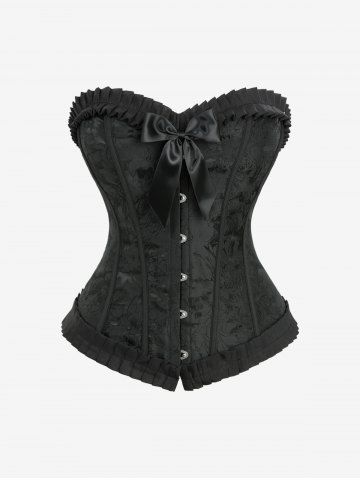 Plus Size Floral Jacquard Lace-up Grommets Bowknot Pleated Trim Corset - Black - M | Us 10