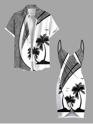 Plus Size Coconut Tree Curve Tropical Leaf Print Hawaii Convertible Beach Cover Up - White - M