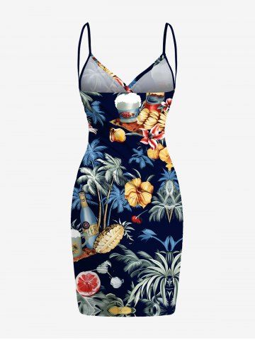 Plus Size Coconut Tree Hibiscus Flower Beer Print Hawaii Convertible Beach Cover Up - Black - 2x