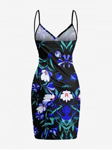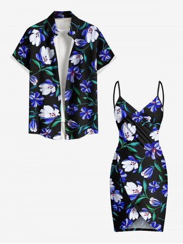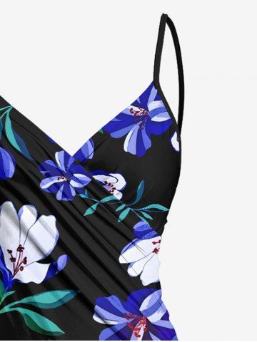 Plus Size Flowers Leaf Print Convertible Hawaii Beach Cover - Black - S