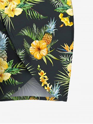 Plus Size Tropical Leaf Hibiscus Flower Pineapple Print Hawaii Convertible Beach Cover Up - Yellow - Xxs