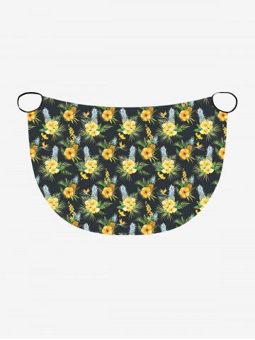 Plus Size Tropical Leaf Hibiscus Flower Pineapple Print Hawaii Convertible Beach Cover Up - Yellow - M