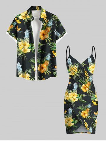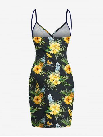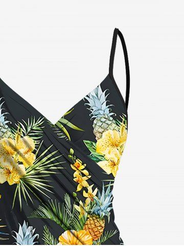 Plus Size Tropical Leaf Hibiscus Flower Pineapple Print Hawaii Convertible Beach Cover Up - Yellow - 1x