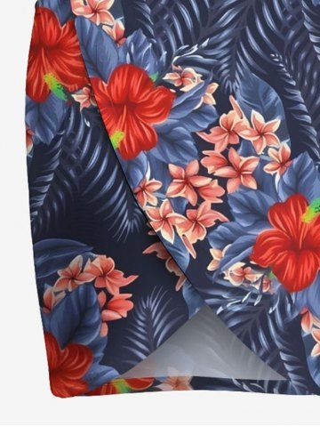 Plus Size Tropical Leaf Hibiscus Flower Print Hawaii Convertible Beach Cover Up - Blue - 2x
