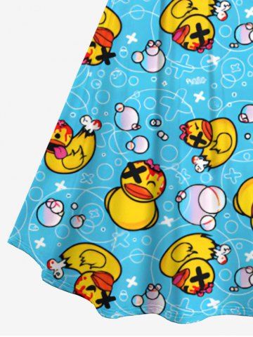 Plus Size Dresses > Plus Size Ducks Bubble Print Ruched Lattice Crisscross Straps Hawaii Dress