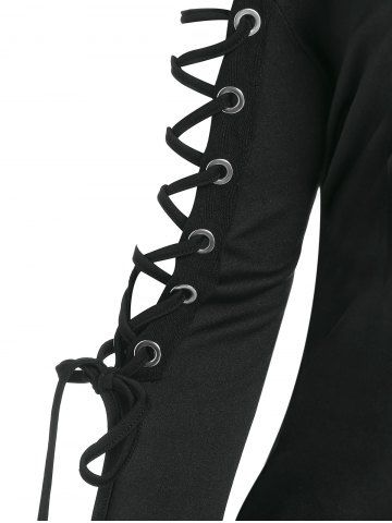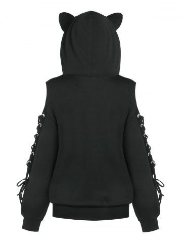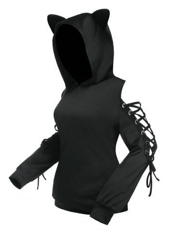 Plus Size Ears Lace Up Sleeves Pullover Hoodie - Black - M | Us 10