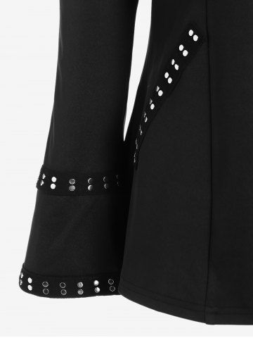 Plus Size Animal Ear Hooded Studded Full Zipper Jacket - Black - 5x | Us 30-32