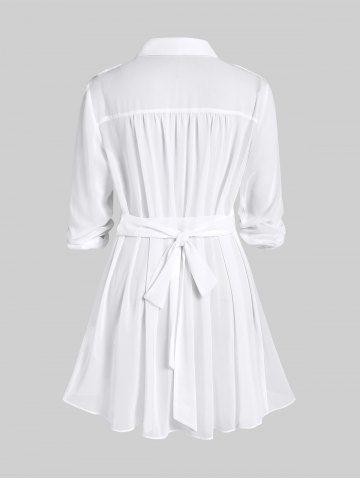 Plus Size Draped Open Front Tab Roll Up Sleeves Solid Cardigan - White - M | Us 10