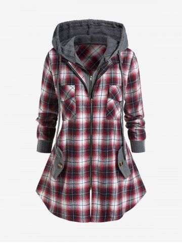 p*****l5Plus Size Flap Pocket Cable Knit Plaid Hooded 2 in 1 CoatColor: DEEP RED Size: 4X | US 26-28top