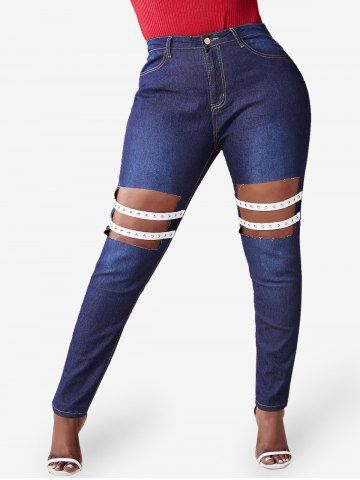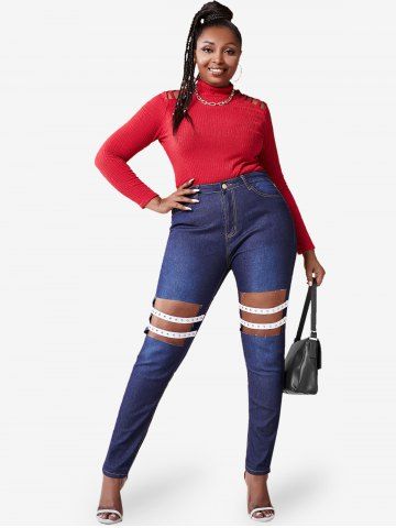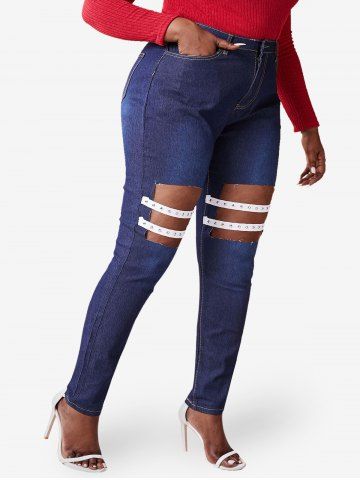 p*****n5Plus Size Cutout Studded Straps Skinny JeansColor: BLACK Size: 4XLGreat value...would definitely recommend!The fabric is so soft and comfortable...Perfect fit and shipped fast!Beautiful, exactly as picturedAmazing quality! fits exactly by size!