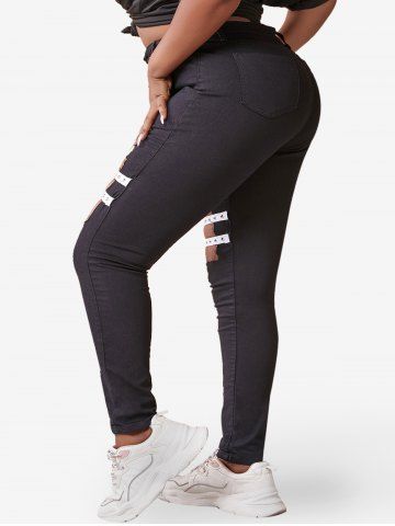 Plus Size Cutout Studded Straps Skinny Jeans - Black - 2xl