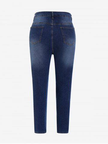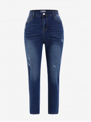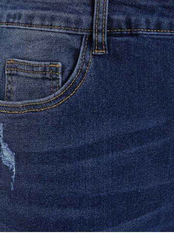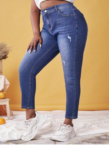 Plus Size High Rise Ripped Skinny Jeans - Deep Blue - 5x