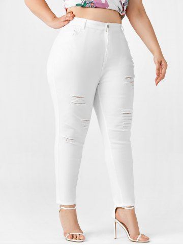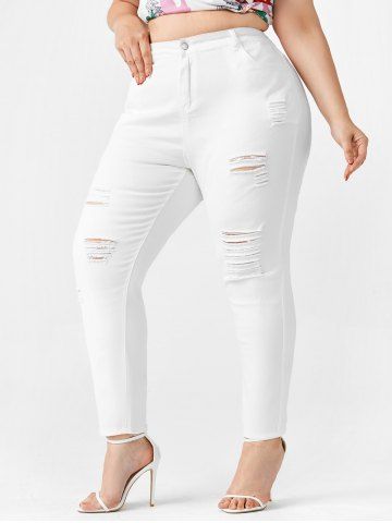 3*****t5Plus Size High Waist Distressed Ripped JeansColor: WHITE Size: 5XWas worried it wouldn't fit but was pleasantly surprised. Excellent fit and can't wait to wear them! Perfect for tall ladies too.