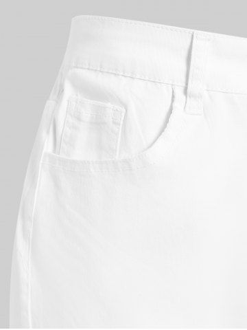 Plus Size High Waist Distressed Ripped Jeans - White - L