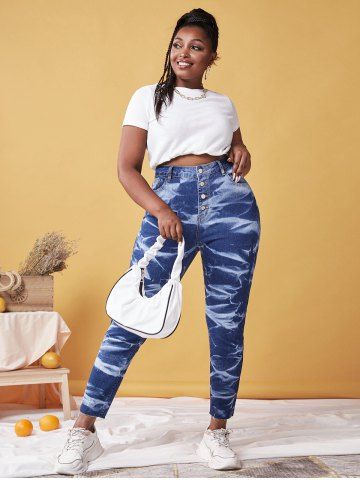 b*****s5Plus Size Tie Dye Letter Ripped Hanky Hem Top and Jeans OutfitColor: LIGHT BLUEso first time buying from rosegal I will say I am overly happy with the clothing that I ordered ☺️ the jeans fit a little large ... and the shirt is true to size and looks amazing on me definitely will be buying more cloths from them I got 2x for both pants and shirt