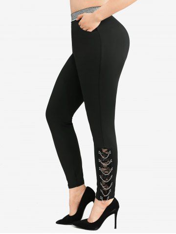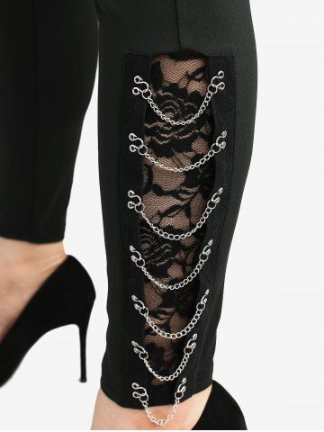 Plus Size Chains Floral Lace Pockets Leggings - Black - 3x | Us 22-24