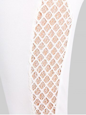 Plus Size Crochet Hollow Out Lace Trim Pockets Capri Leggings - White - 2x | Us 18-20