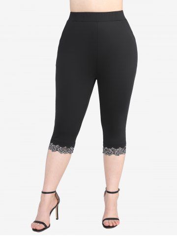 b*****a5Plus Size Floral Lace Trim Pocket Patchwork Capri LeggingsColor: BLACK Size: 4X | US 26-28fits well.