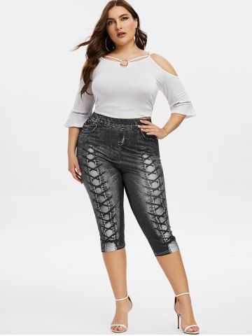 R*****r5Floral Tee and 3D Lace Up Jean Print Capri Leggings Plus Size Summer OutfitColor: LIGHT PINKMy husband actually likes this o e the best fits true to size and very thin so will be great for summer and vacation!!!