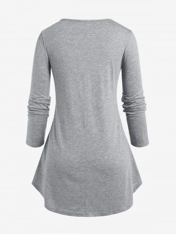 Flower Pattern Lace Mock Button T Shirt - Light Gray - L