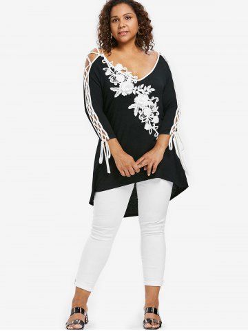 w*****45Color: BLACK Size: 4X | US 26-28gorgeous top. very comfy and super cute! i got the black pants with the white lace panels in the legs to go with it!