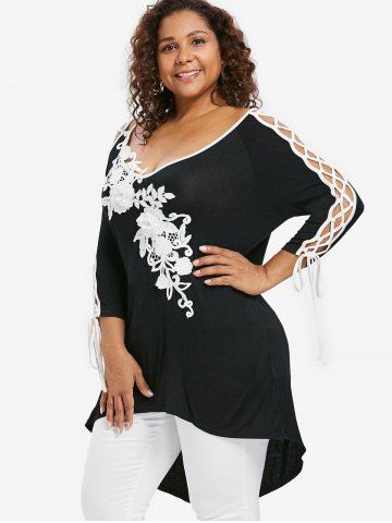 w*****45Color: BLACK Size: 4X | US 26-28gorgeous top. very comfy and super cute! i got the black pants with the white lace panels in the legs to go with it!