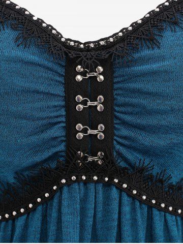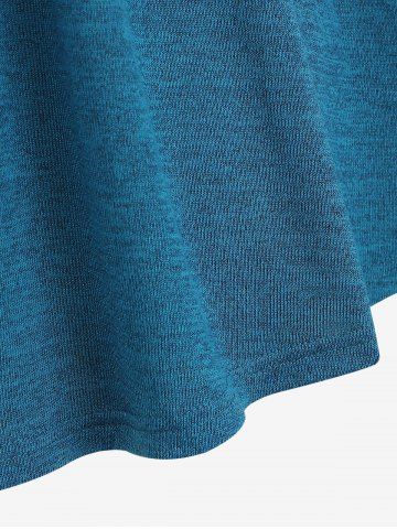 Plus Size Buckles Rivet Lace Trim Ruffles Ruched Marled Long Sleeve Top - Blue - 1x | Us 14-16