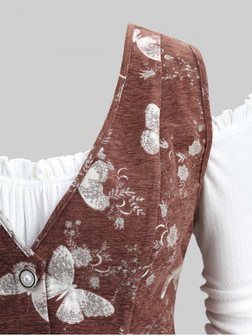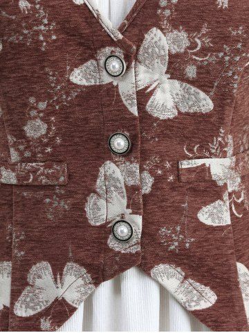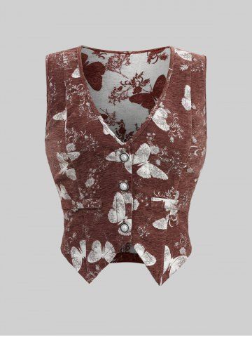 a*****a5Plus Size Butterfly Flowers Print Buttons Vest and Ruffles Ruched Cold Shoulder TopColor: COFFEE Size: L | US 12Tjs à la bonne taille . C ' est le meilleur site pour les grandes tailles . Les promos sont réelles.