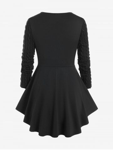 Long Sleeves > Plus Size Cable Knit Panel Mixed Media Lace Up Tee