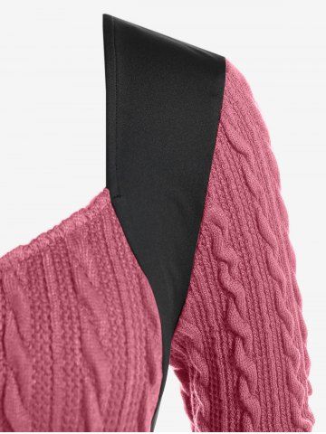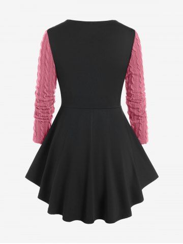 Long Sleeves > Plus Size Cable Knit Panel Mixed Media Lace Up Tee