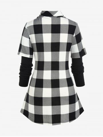 R*****r5Plus Size Cable Knit Panel Plaid Cowl Neck TeeColor: BLACK Size: 2X | US 18-20This shirt is awesome! The knitted part is a nice durable fabric that will be warm over the winter. The white plaid is more satin than i would have liked, but it's soft. The sizing was good, if not a bit too large. It made it through the washer with no issue. I hung it up to dry as a precaution. Shipping wasn't an issue as some reviews I've read said it was. I got it within two weeks. Overall, I'm pleased with the purchase.