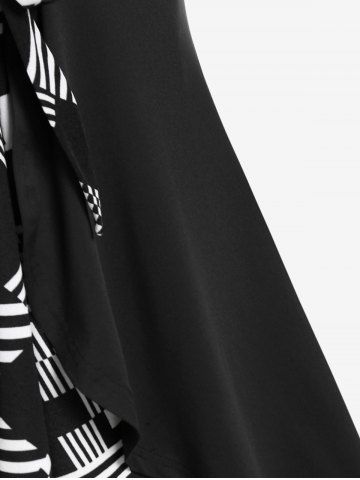 a*****y5Plus Size Mock Button Patchwork Striped TopColor: BLACK Size: 2X | US 18-20This is so fun -- I love anime and this reminds me of some of their outfits. I ordered this once size larger than I needed and so it fits a little baggy. Go with what you know -- The materials is mixed -- one side seems almost silky an the otherside is a soft polyester. More of a long shirt to me --- but could easily be worn as a mini if you are bold enough. Great purchase.