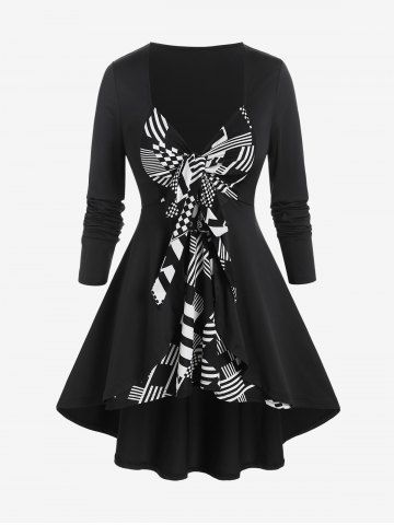 R*****a5Plus Size Checkerboard Stripes Square Neck Colorblock T ShirtColor: BLACK Size: M | US 10this top is too cute the fabric is nice and soft I love the buttons on it and I love how it looks on me you can wear black leggings with it white leggings with it or you can wear jeans with that thank you Rose gal for all the beautiful clothing
