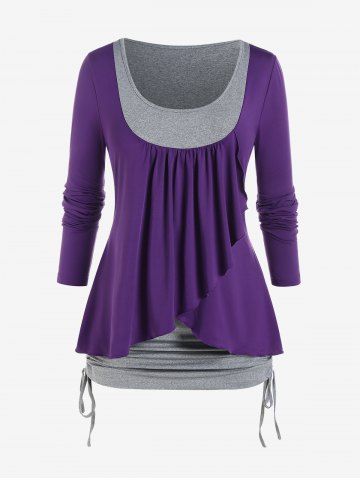 d*****95Plus Size Colorblock Crisscross Cinched 2 in 1 TeeColor: LIGHT PURPLE Size: 1X | US 14-16Love the shirt fits good and feels great. Goes good with skinny jeans and leggings. Would definitely recommend this product.