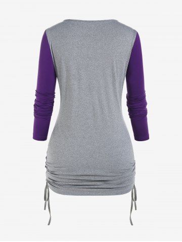 p*****u4Plus Size & Curve Lace Panel Cinched Ruched Space Dye T ShirtColor: LIGHT PURPLE Size: 1X | US 14-16thought i ordered an xl but i guess i order a 1x. so it is a little big but I'm sure it will shrink to perfect size after a few washes