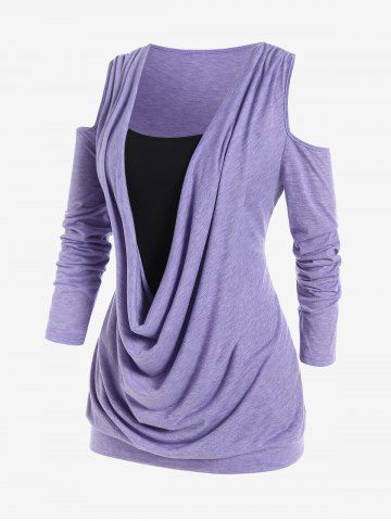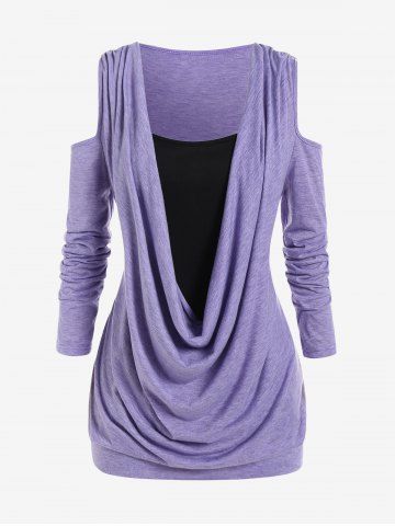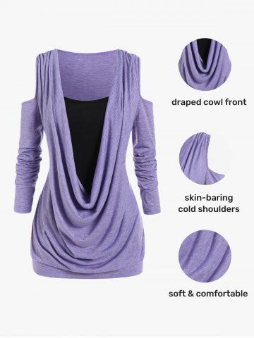 Plus Size Cold Shoulder Cowl Front Tee - Light Purple - L | Us 12