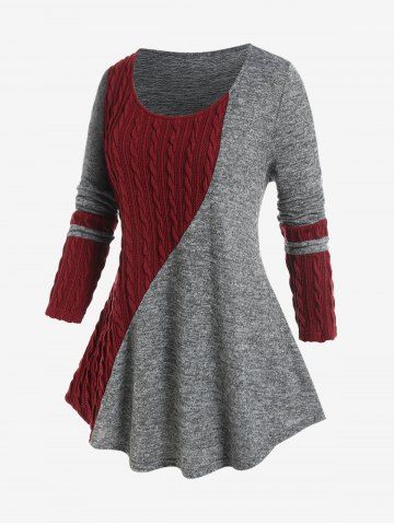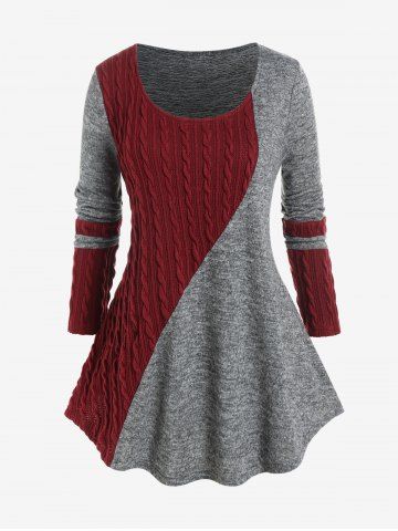 Long Sleeves > Plus Size Colorblock Cable Knit Tee