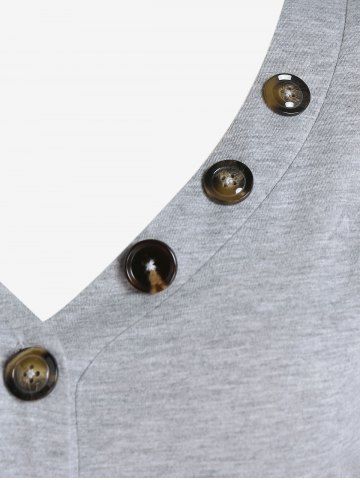 R*****r4Colorblock Long Sleeves Tee with Buttons and Leggings Plus Size OutfitColor: LIGHT GRAYLove the fit and feel of the shirt! It’s very roomy and comfy. I’m a size 22 up top and 24 on bottom so ordered 3x and it fits very nice. Pants are okay, they are different material, the same shiny material most pants here are made with. It’s comfortable but for an outfit it’s odd to have a material with “painted” on colour blocks on the pants and the shirt be a different material.