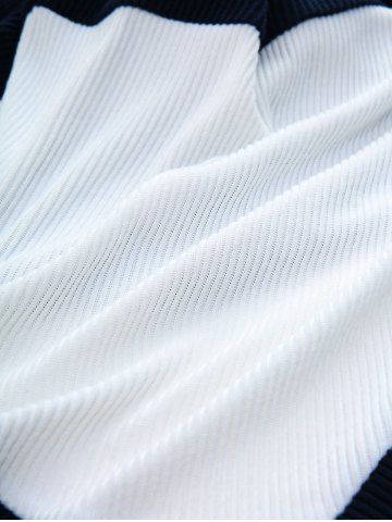 Plus Size Colorblock Patchwork Turn Down Collar Cinched One Shoulder Ribbed Textured Asymmetrical Top - Deep Blue - L | Us 12