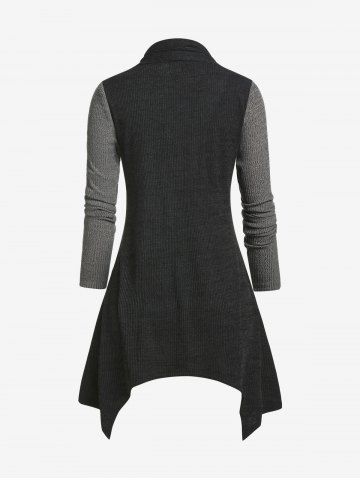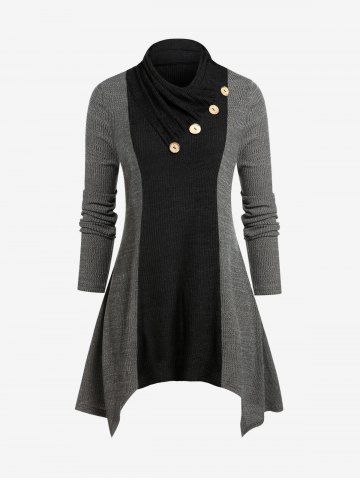r*****e5Plus Size Colorblock Shawl Collar Handkerchief TeeColor: MULTI Size: LMagnifique pulls gillet qui tient bien chaud Se porter avec tout Téléphone sur le côté sont super jolies franchement je l'adore et je l'ai déjà adopté