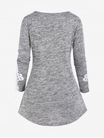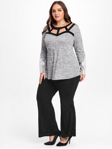 c*****85Cutout Lace Panel Space Dye Tee and Lace Applique Colorblock Leggings Plus Size OutfitColor: GRAYthe pants are alitte big! Next time I'll order a smaller