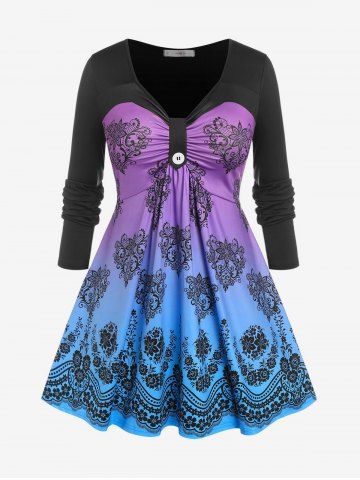 z*****74Plus Size & Curve Ethnic Printed Colorblock Crisscross A Line Sleeveless DressColor: MULTI Size: 3X | US 22-24I'm 5'3 and I wear anywhere fr XL-2X and I'm generally a size 22. Because I'm smaller on the top and carry my weight from my waist down especially in the belly, hips and butt...when it comes to dresses I generally only need an Excel or a 1X. So I took a risk and I bought the 3x in this one and another one they're basically the same style just a different print and I probably could have done with the 2X. Especially cuz of the the top part across the chest. It's a little baggy at the side where my boobs are and a little bit of room in the back as well.... But fits my belly and everywhere else below the waist. I love this pattern and I love how it goes all the way around... it's on the back as well. I still give it a positive rating because the material is nice, light and slinky...and good price ☺️