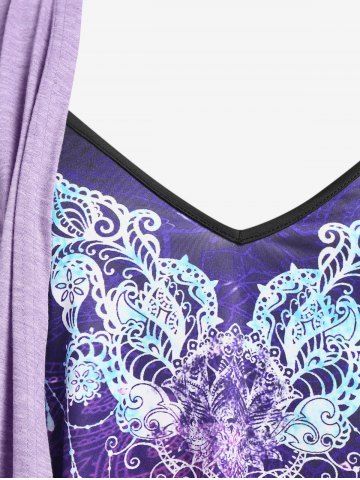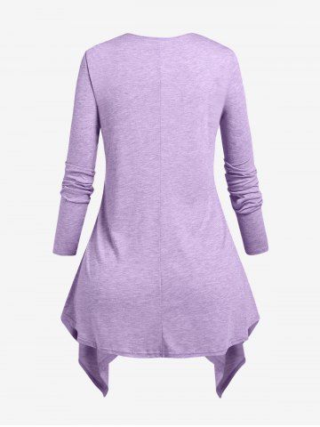 Plus Size Faux Twinset Tribal Print Asymmetric T-shirt - Light Purple - 5x