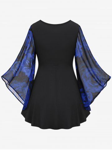 L*****a5Plus Size Flare Sleeves Rose Flower Printed Lace Up Chiffon Layered Ruched Bust Valentines TopColor: DEEP RED Size: 4X | US 26-28The fit was perfect with room to adjust in the bust, which is great since many blouses that is the problem area as they don't always match up with the size you need in the rest of your body. The material was very pleasing.