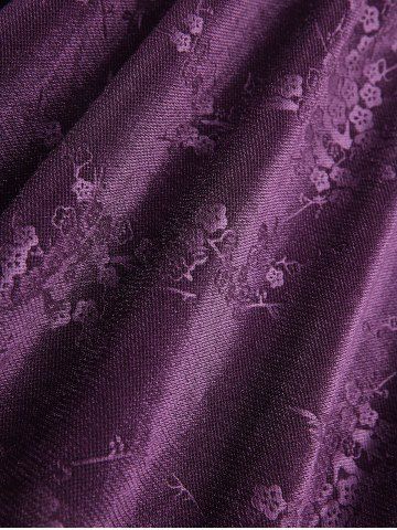 Plus Size Floral Embossed Ruched Surplice Long Sleeves Top with Removable Chain Belt - Purple - 2x | Us 18-20