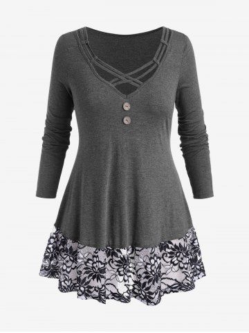 B*****b5Plus Size Lace Buttons Pleated T ShirtColor: GRAY Size: 3XLovely top with lace. Material is soft and comfortable, perfect fit and shipped fast. The matetial is lightweight but not see through. High quality and made very well.
