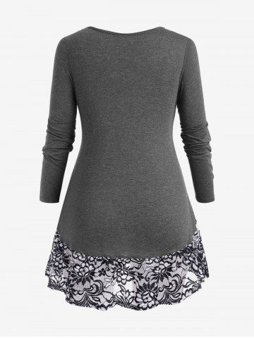 Plus Size Floral Lace Panel Crisscross T-shirt - Gray - 4x
