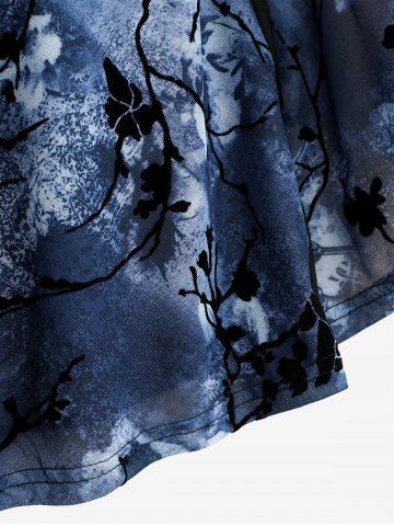 L*****a5Plus Size Flower Flocking Rivet Lace Trim Ruched Twist Flare Sleeves 2 In 1 TopColor: DEEP BLUE Size: M | US 10Fits true to size it is a very beautiful top. I got many compliments on it from many different people. The design is different from others reflects a little goth. It is comfortable to wear it flows nicely